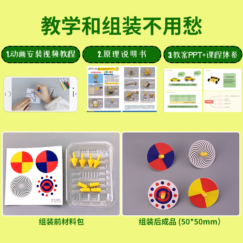 科技小制作diy变色圆盘模型幼儿园科学区手工制作材料包视觉暂留,湖北 荆门