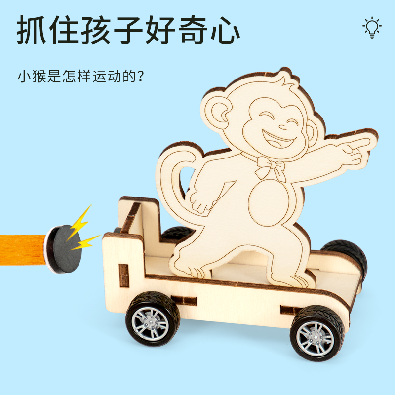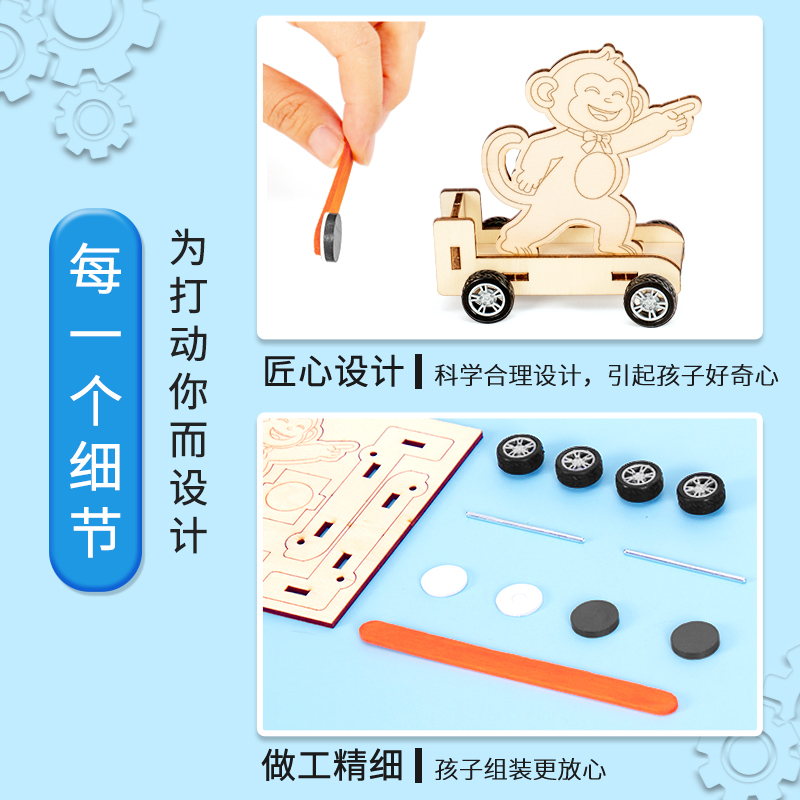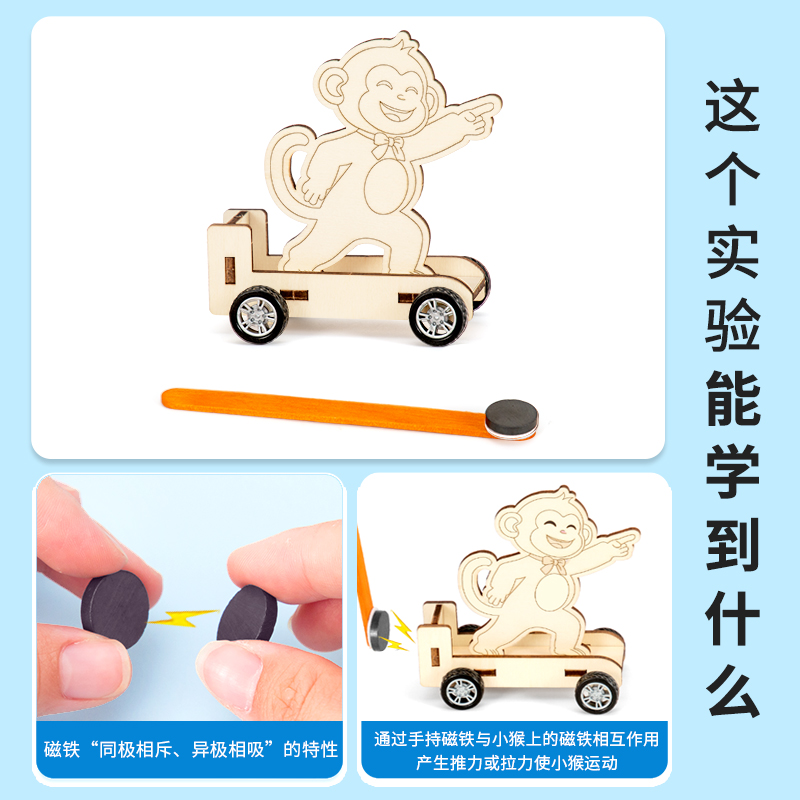 科技小制作磁力小猴车斥力手工发明材料DIY科学实验STEM儿童教具,山东 聊城