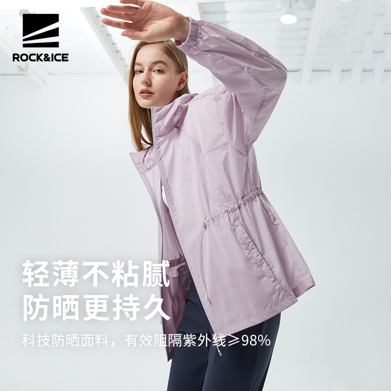 ROCKICE户外防晒衣女夏季中长款运动风衣防紫外线皮肤衣开衫外套,天津