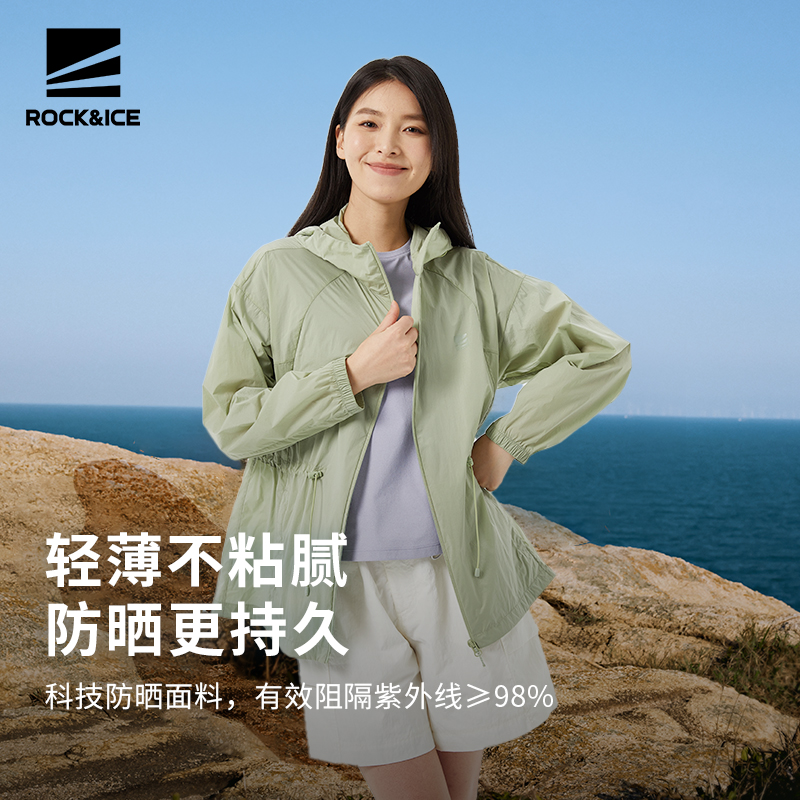 ROCKICE户外防晒衣女夏季中长款运动风衣防紫外线皮肤衣开衫外套