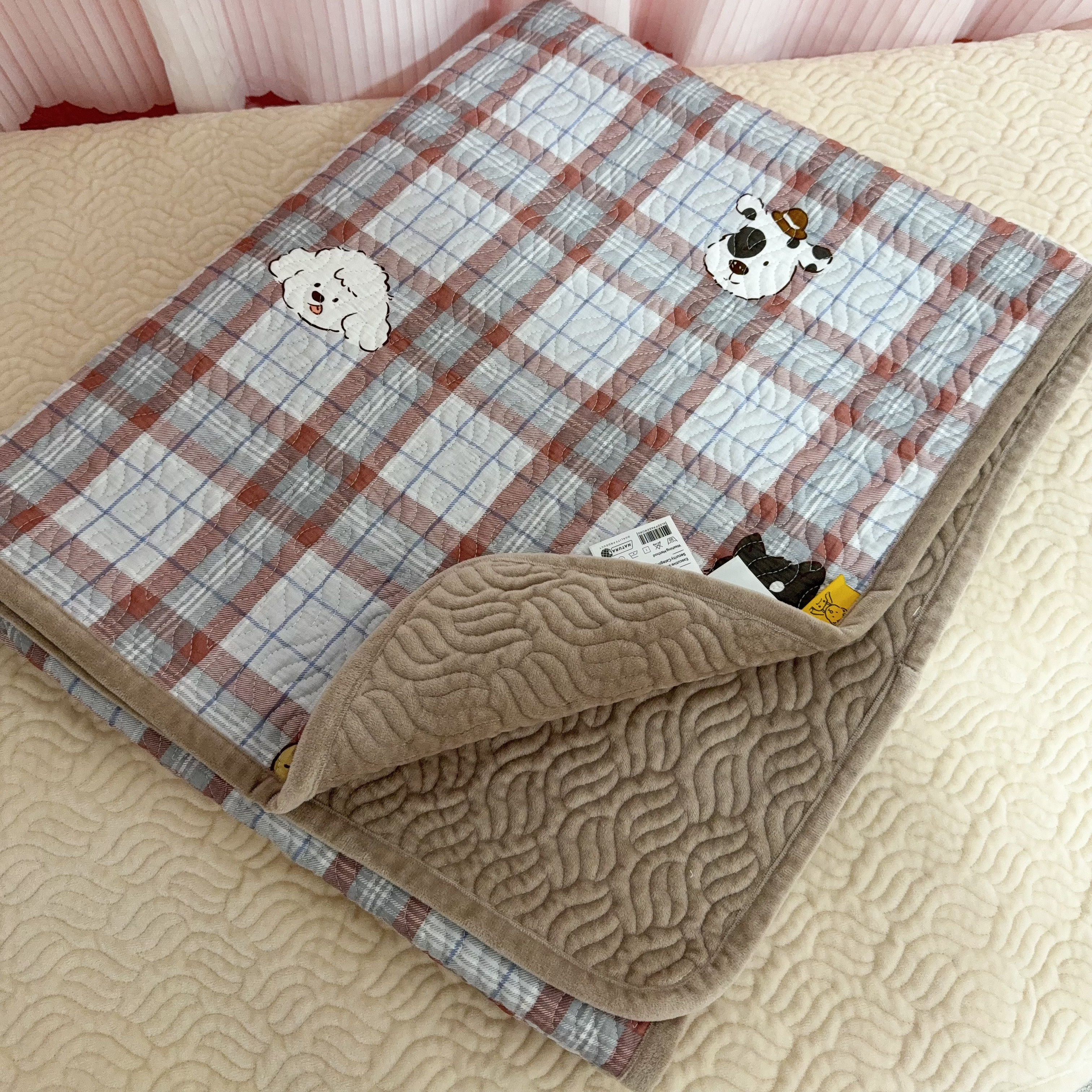 单人用90*200cm双面纯棉一面纯棉一面绒单人床宿舍床单沙发垫床盖,山东 青岛