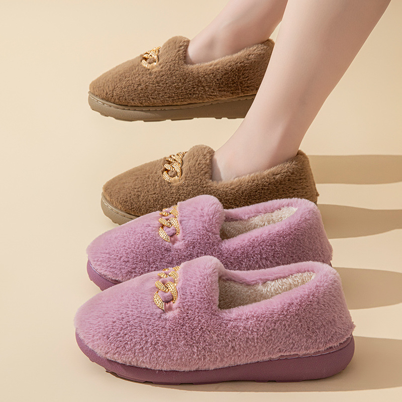 冬季新款棉鞋女保暖室内居家一脚蹬加绒加厚包跟棉拖鞋妈妈豆豆鞋,浙江 宁波