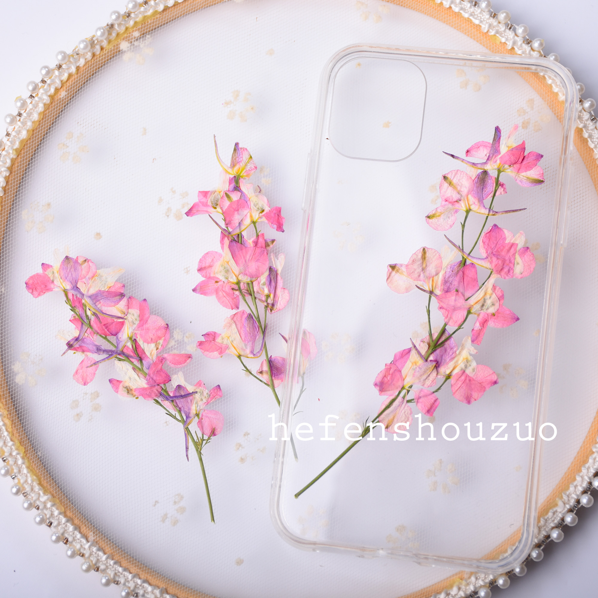 带枝粉色飞燕 真花押花植物标本 干花滴胶杯垫材料 千鸟花手机壳,河北 保定