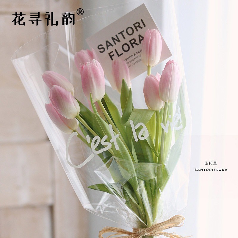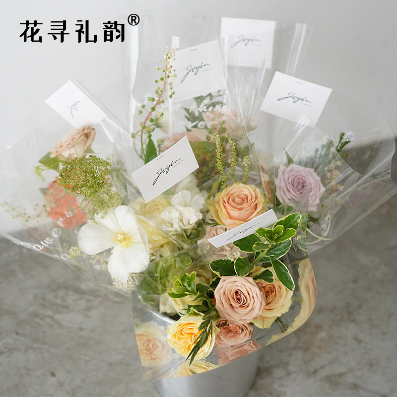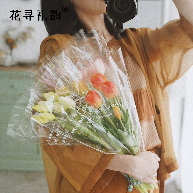 透明花束鲜花包装袋单支多支玫瑰英文单只花艺玻璃包花纸材料全套,浙江 金华