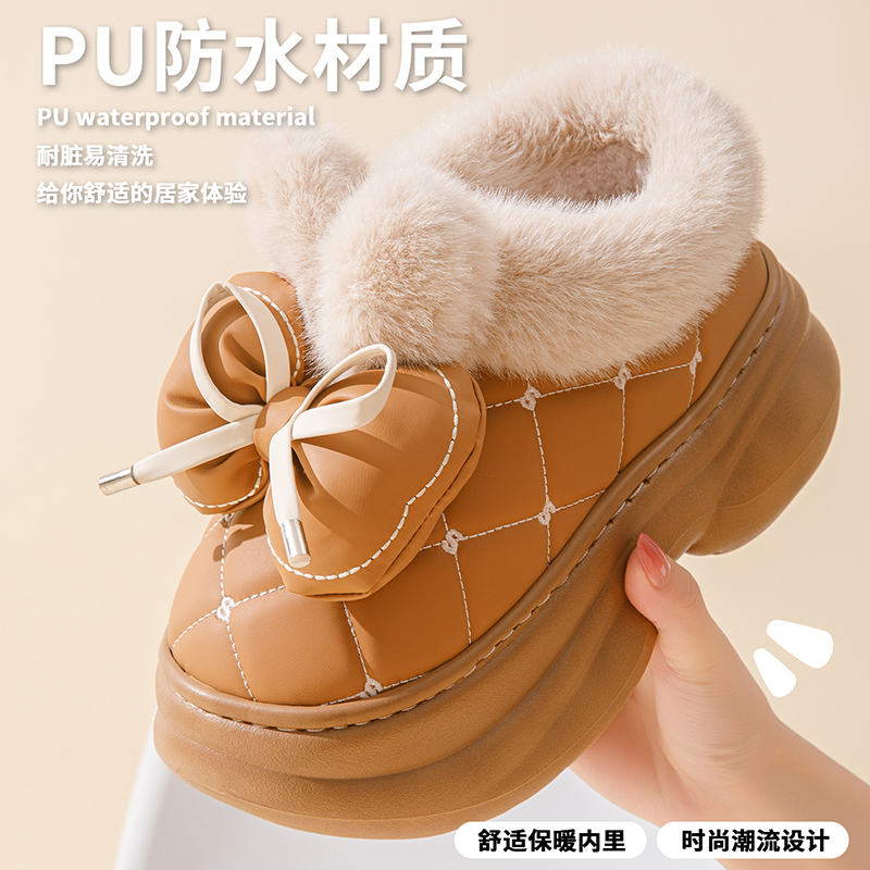 高跟棉拖鞋女包跟厚底居家网红PU皮拖鞋冬季加绒加厚保暖棉鞋外穿