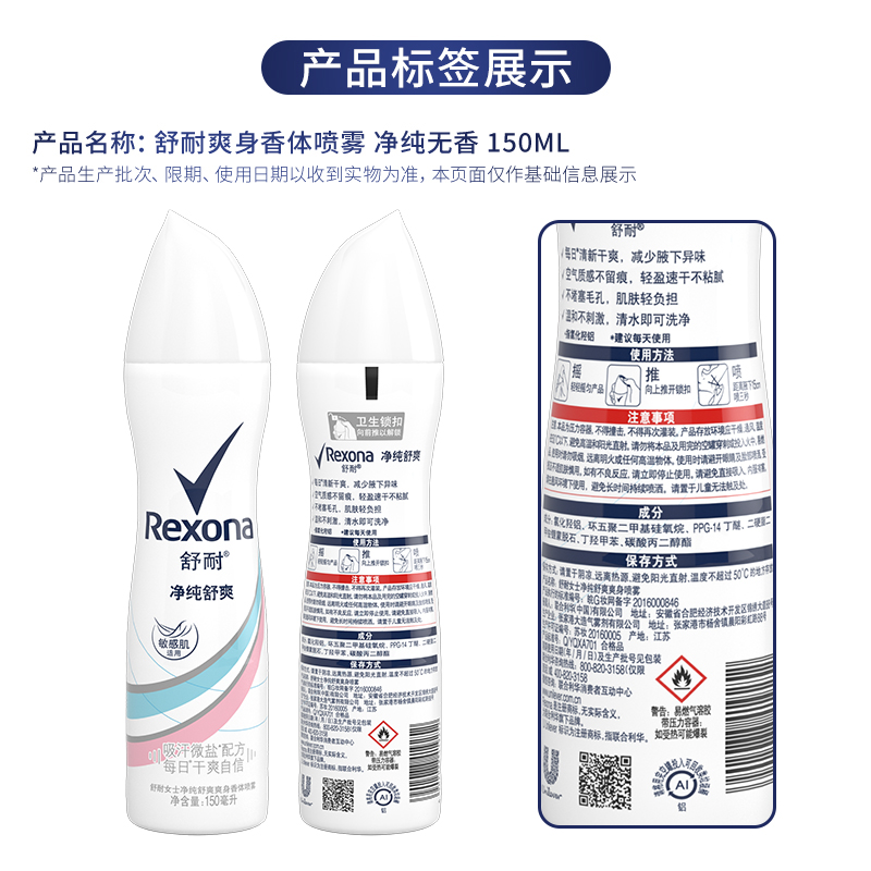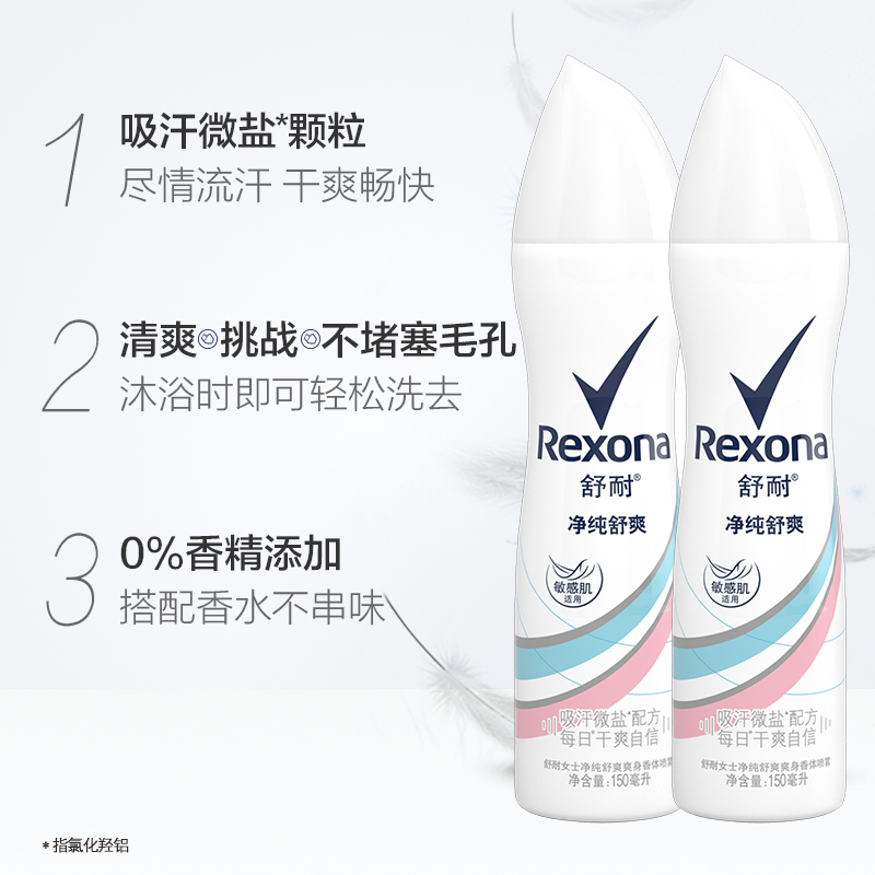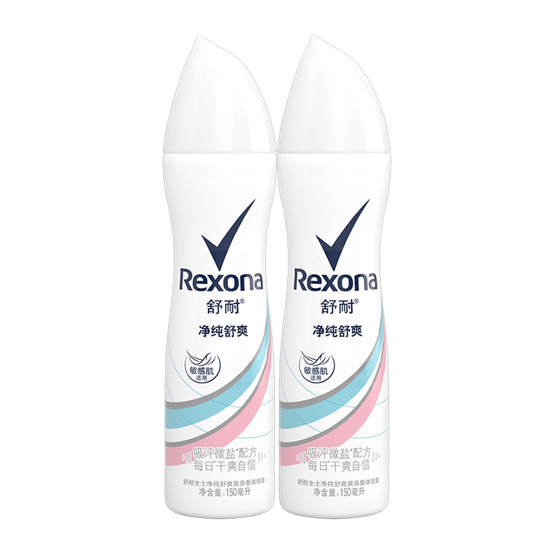 Rexona/舒耐微盐爽身香体止汗去异味纯净舒爽150ml*2止汗露,上海