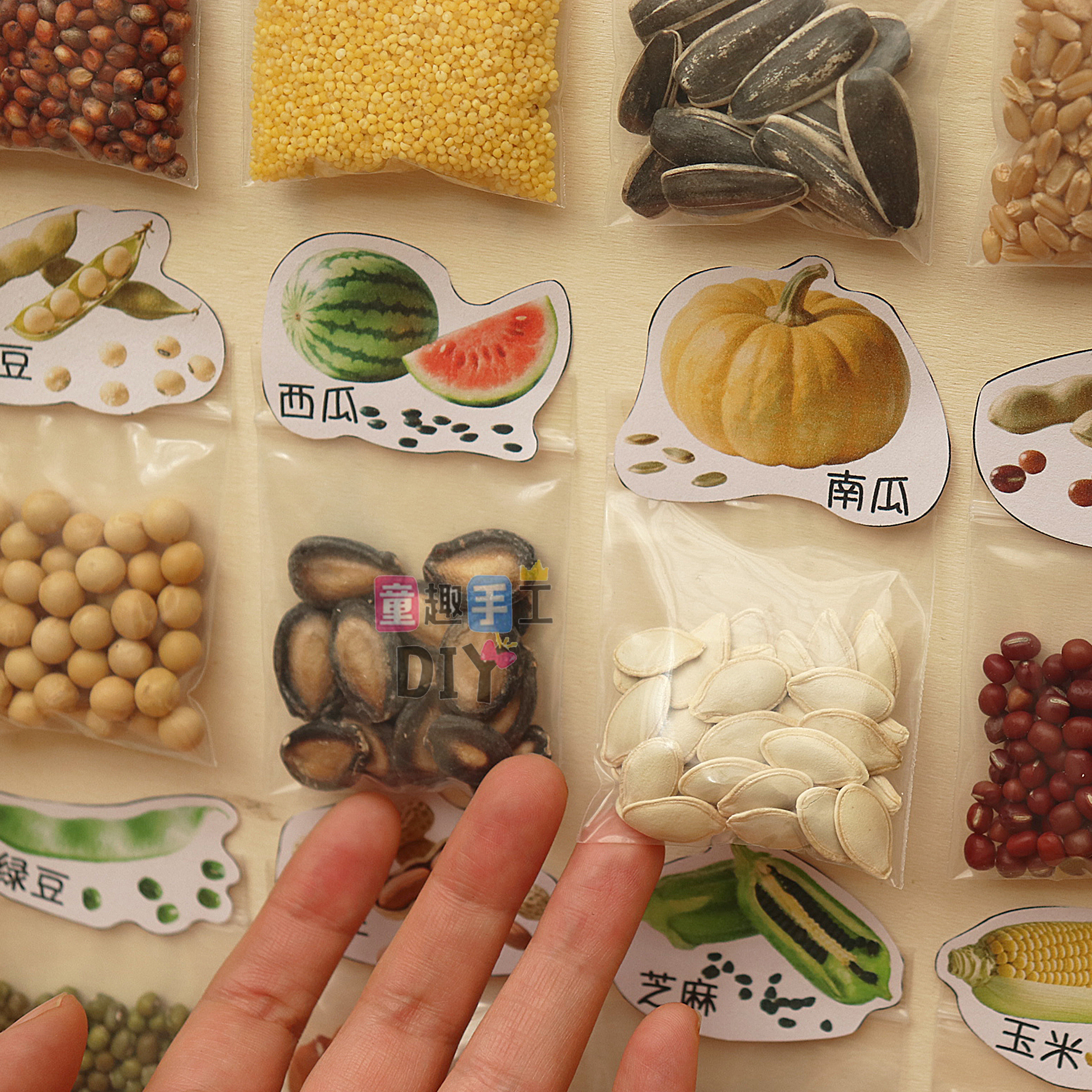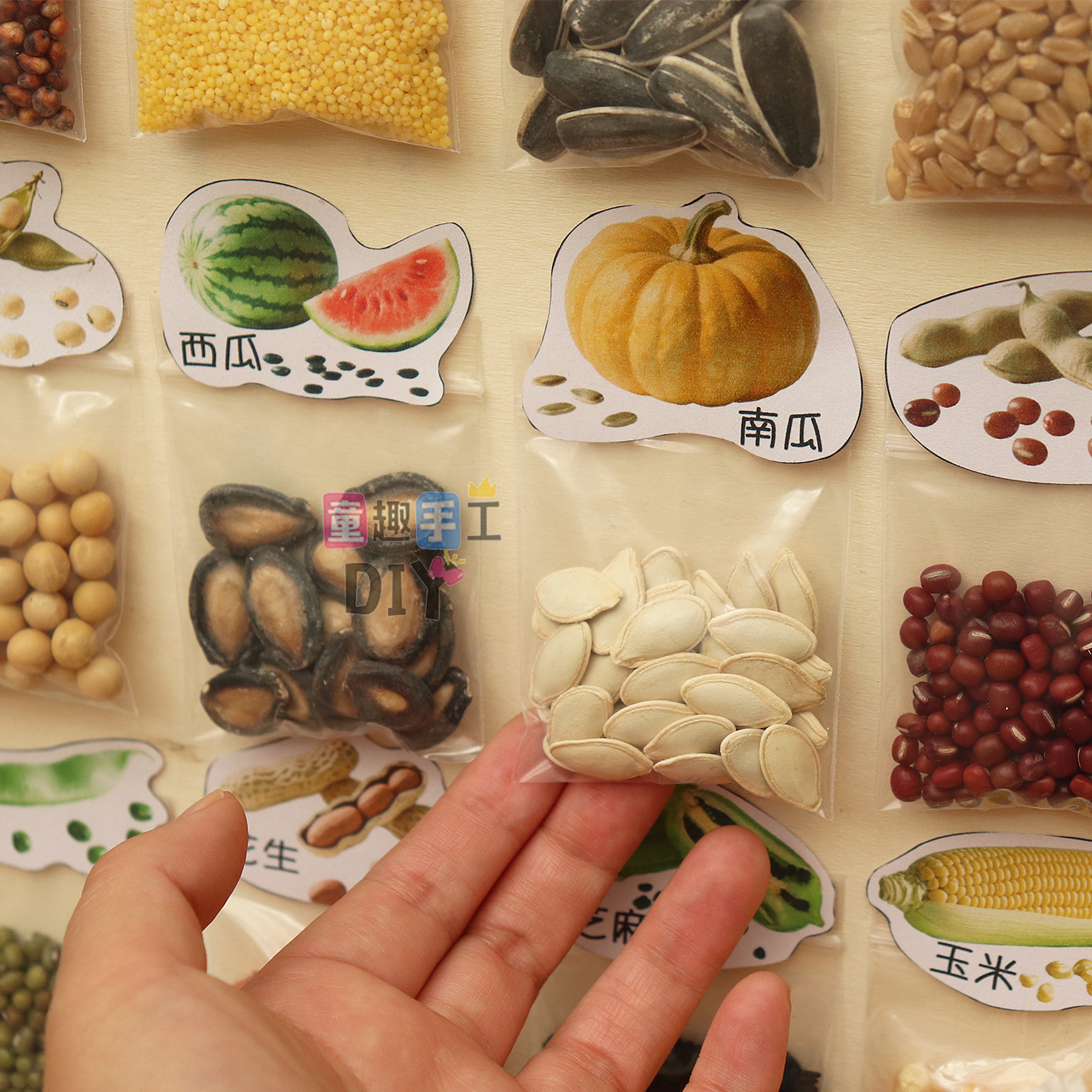 幼儿园创意手工课科学区材料包豆子粘贴画丰收秋天的种子植物标本,河南 济源