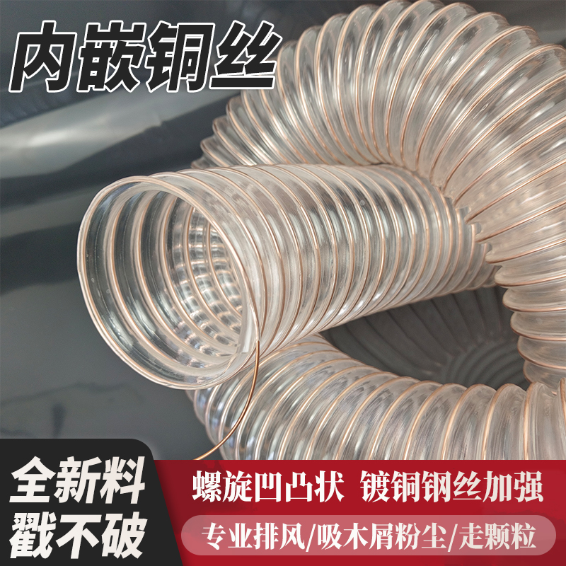 PU聚氨酯风管镀铜钢丝软管透明耐温雕刻机木屑吸尘管伸缩通风软管