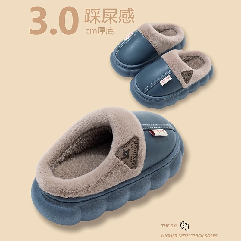 儿童棉鞋秋冬季男童皮面防水小孩居家室内女童宝宝加绒保暖棉拖鞋,浙江 金华