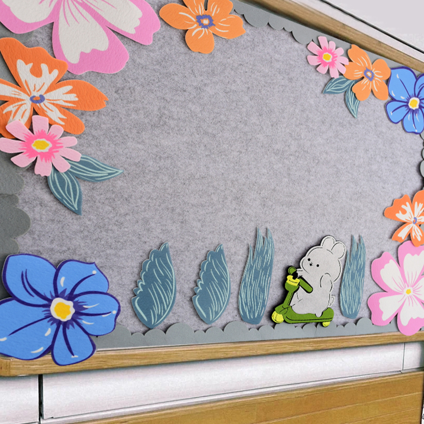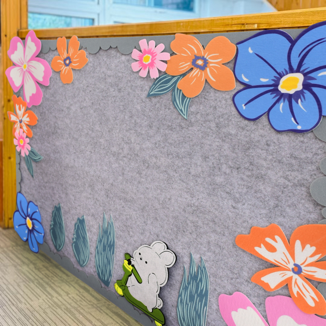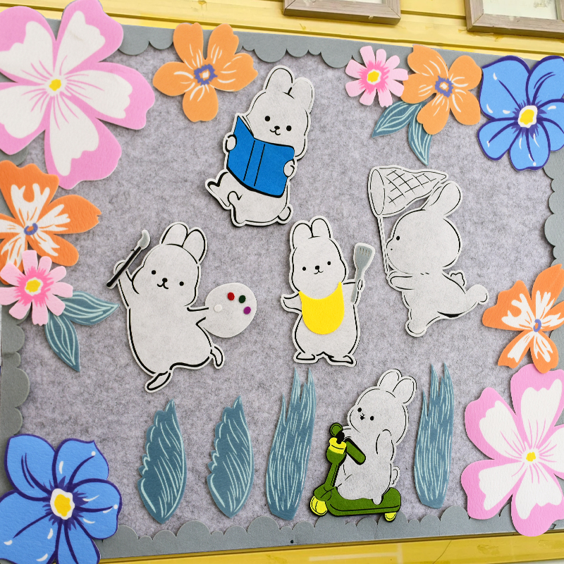 3D印花无纺布花朵树叶兔子墙面墙饰贴幼儿园黑板环创装饰布置材料,浙江 温州