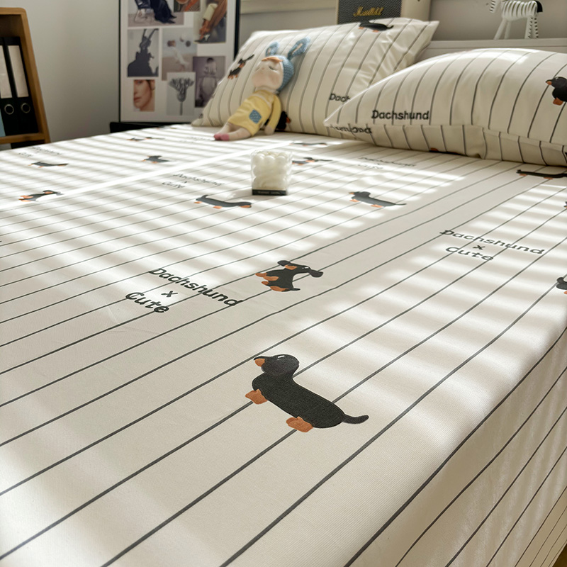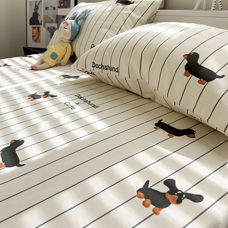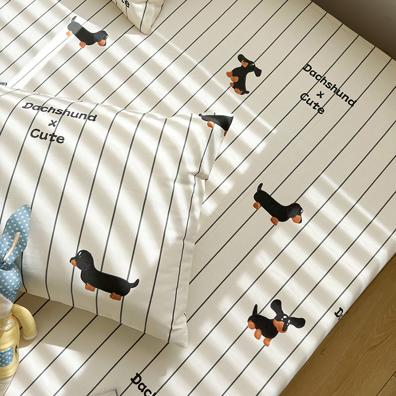 高档加厚老粗布条纹腊肠狗纯棉床单单件100全棉床笠枕套四季可用