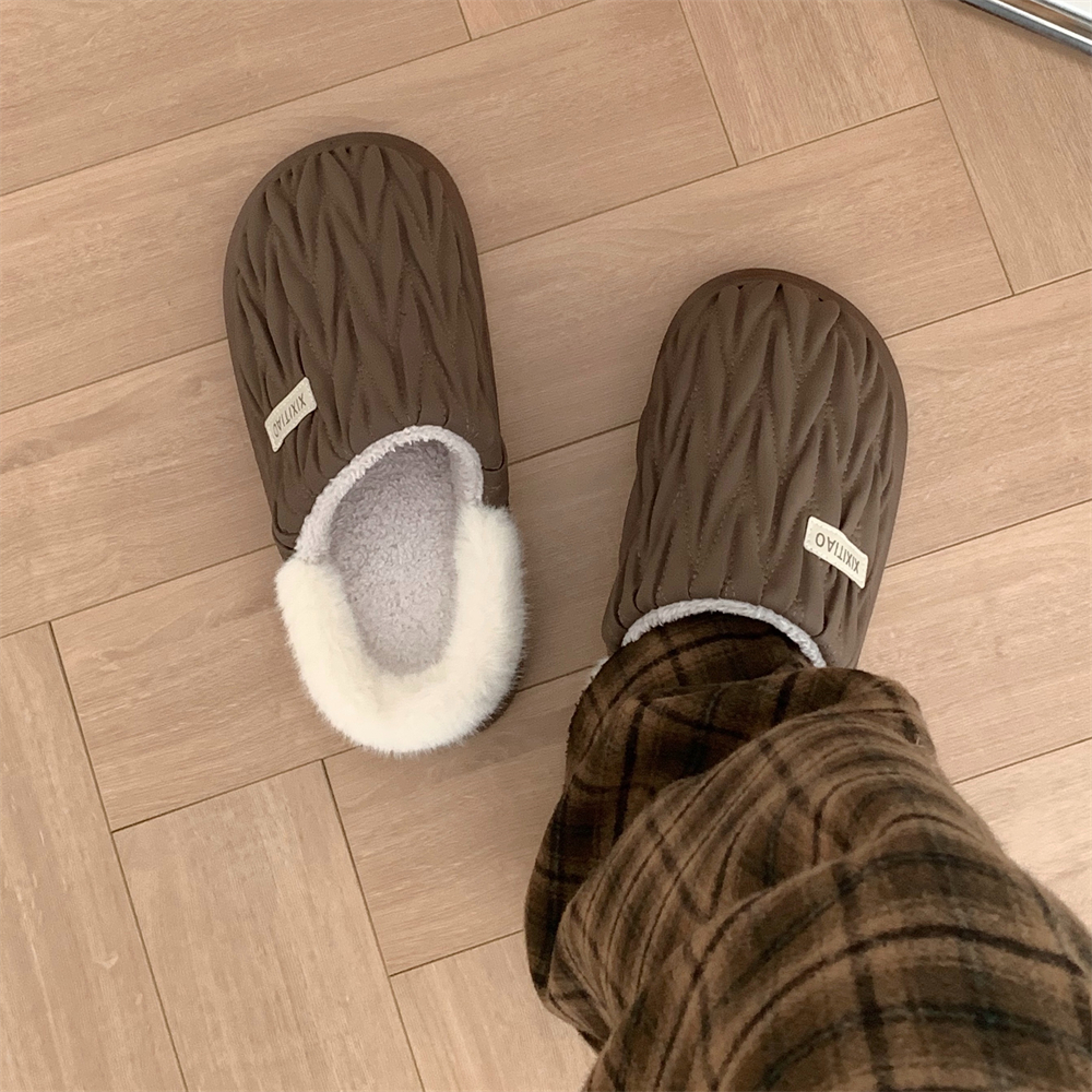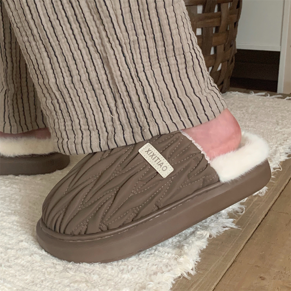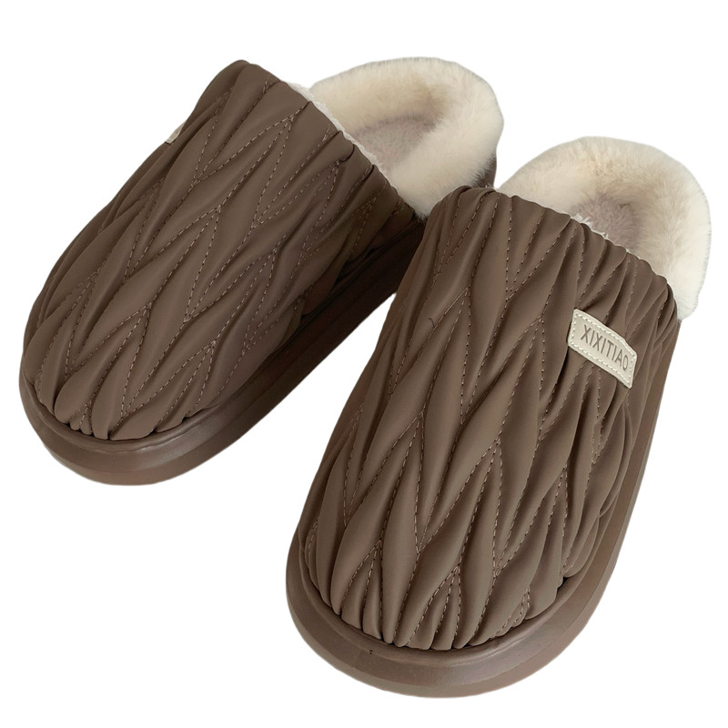 细细条个性时尚褶皱PU皮包头棉鞋冬季高级感男士居家外穿棉拖鞋