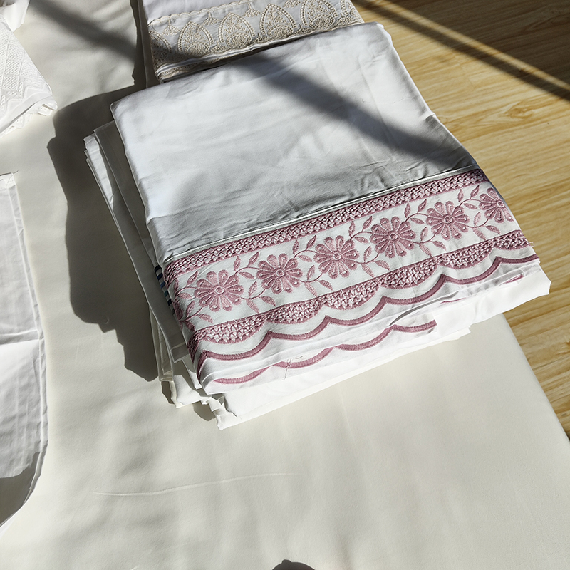 样品捡漏全棉绣花床单白色花边纯棉刺绣被单外贸出口2025年新平纹,山东 烟台