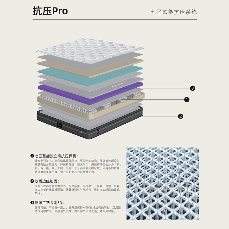 [星空pro]晚安床垫撑腰硅胶记忆棉3D材料7区弹簧线下同款 星空pro