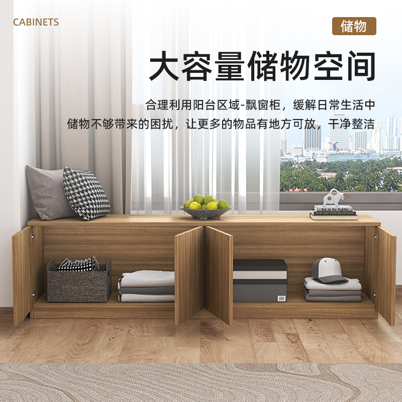 实木阳台柜子储物柜家用可坐阳台收纳置物柜大容量地柜矮柜飘窗柜