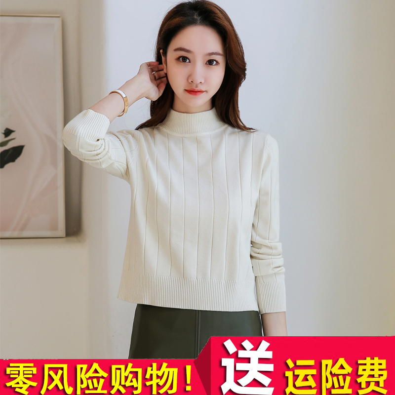 半高领毛衣秋冬女装短款小个子上衣套头中领针织衫长袖内搭打底衫,广东 广州