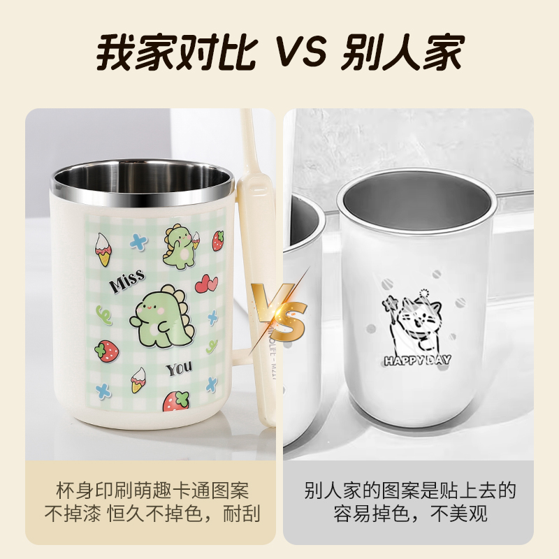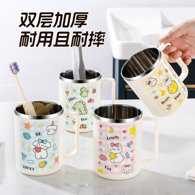 304不锈钢漱口杯防霉儿童可爱刷牙杯子一家三口带手柄情侣牙刷杯