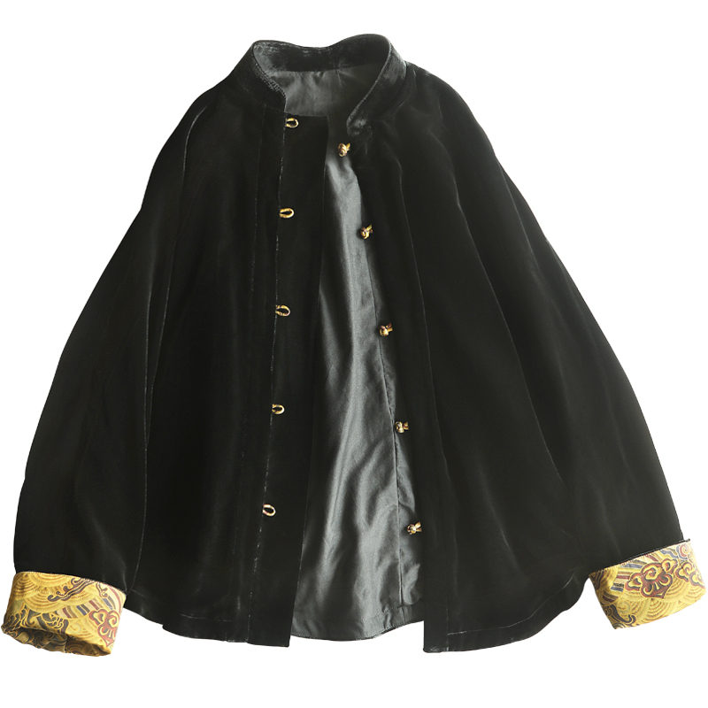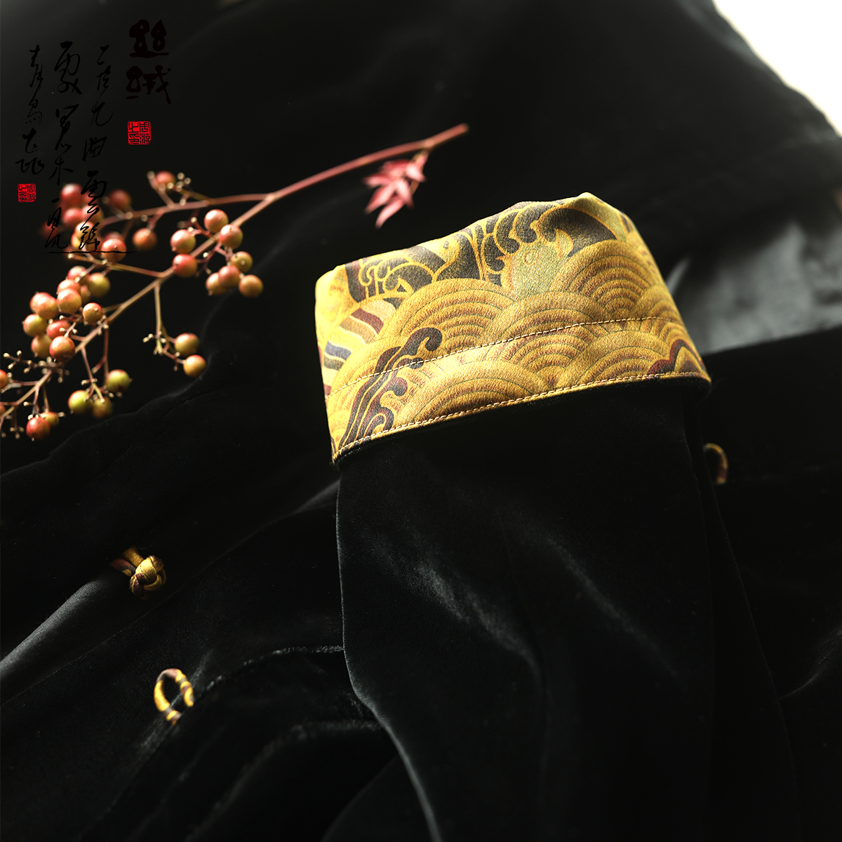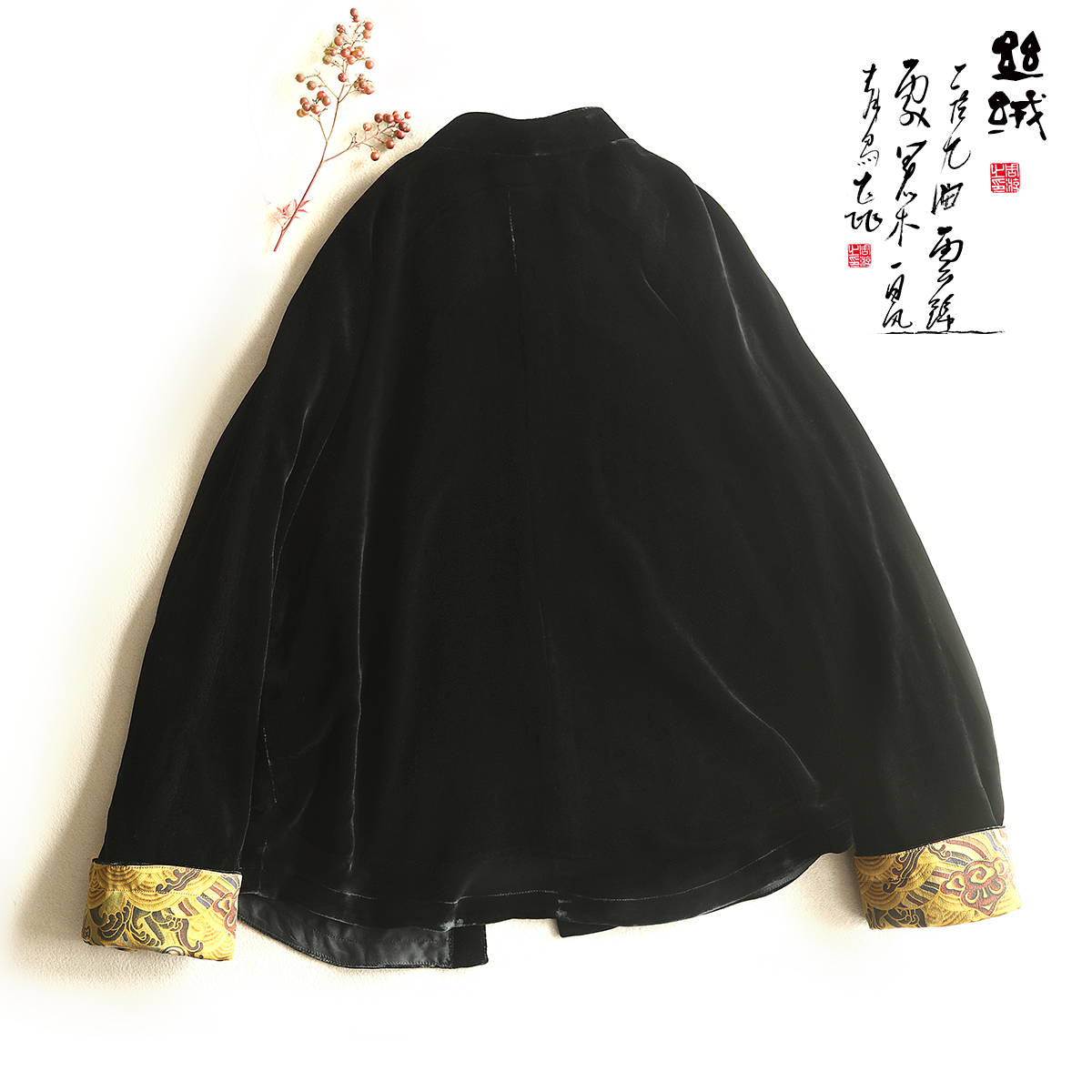 云澍原创新中式改良真丝绒香云纱拼接外套女秋季新款唐装茶服女