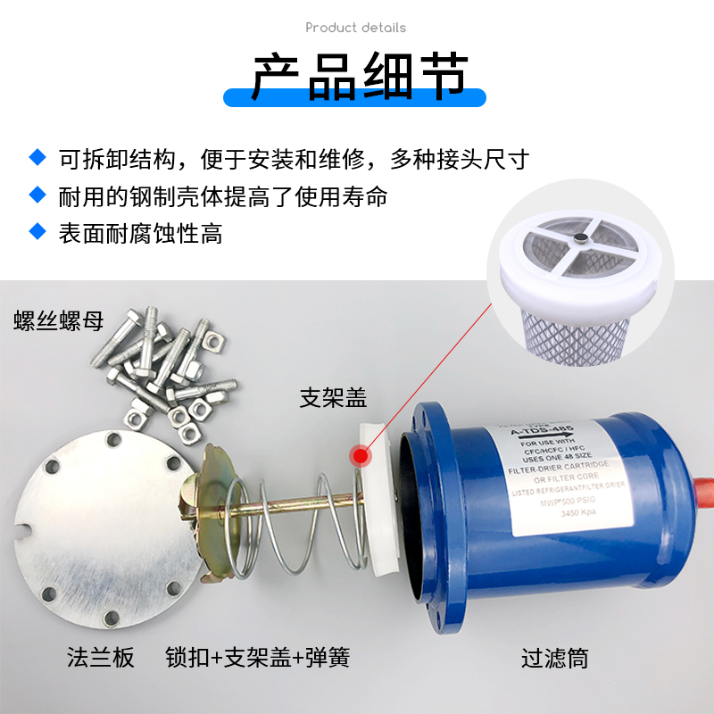 冷库制冷机组回气过滤桶中央空调冷干机空压机可拆卸干燥过滤器,上海