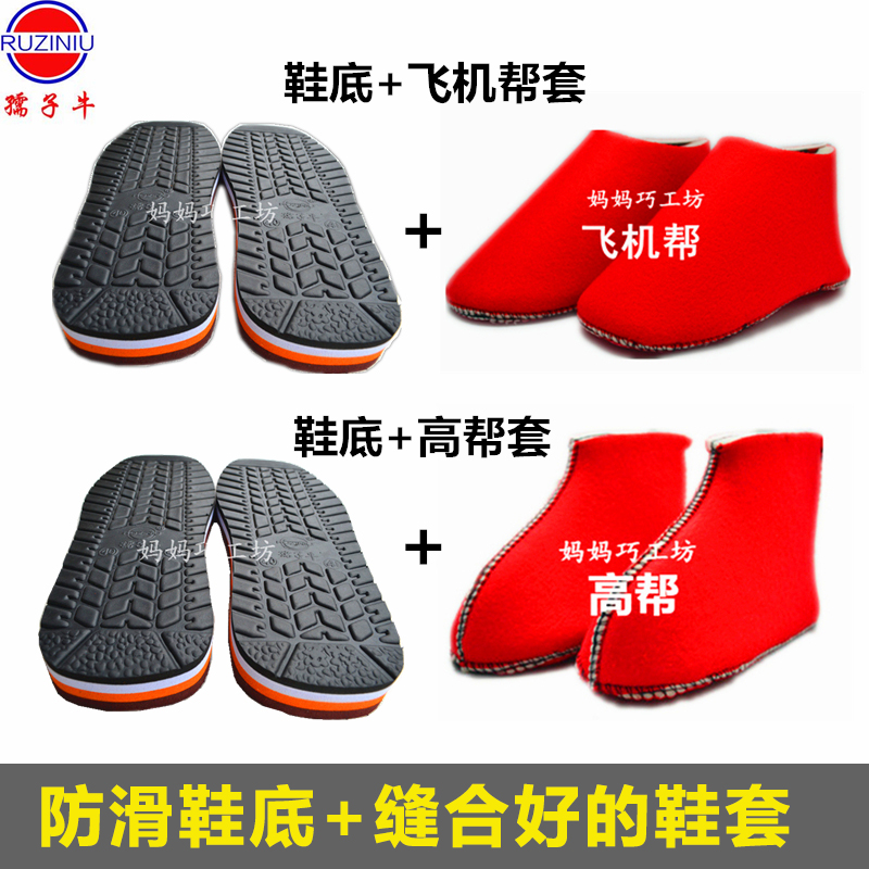 手工做毛线棉鞋海绵材料内衬鞋帮+孺子牛鞋底 缝合好的内胆包邮