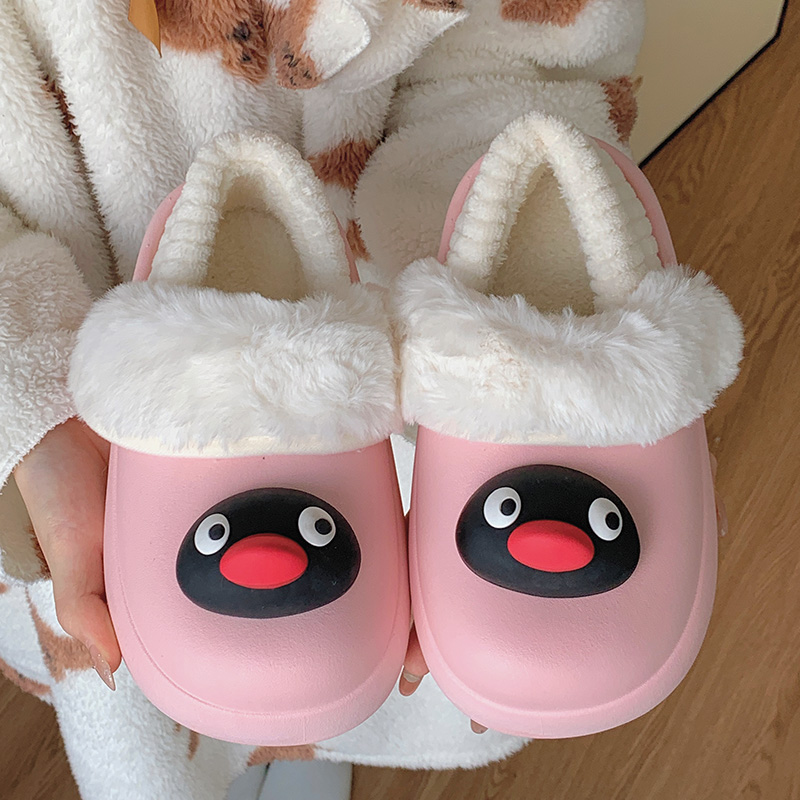 棉拖鞋女冬季可爱企鹅外穿防滑防水加绒保暖室内居家包跟棉鞋假日,广东 揭阳