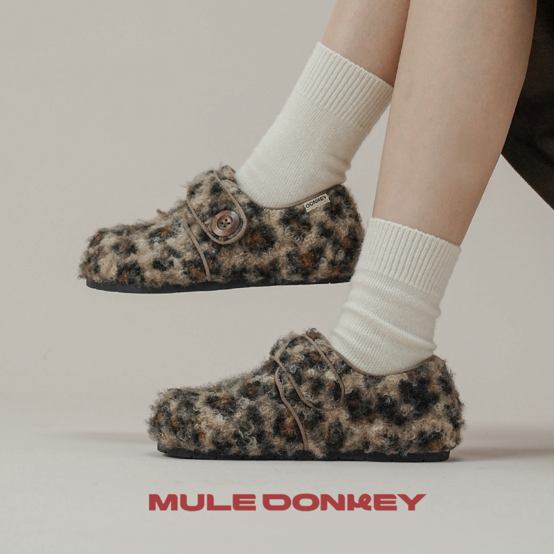 多嘴驴Donkey复古勃肯鞋女秋冬加绒保暖毛毛鞋一脚蹬毛绒豹纹棉鞋,浙江 温州