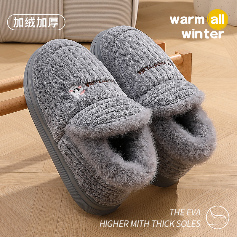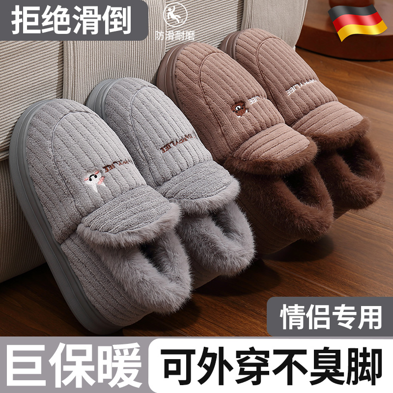 加厚棉拖鞋男士秋冬季包跟居家外穿保暖加绒厚底防滑毛绒棉鞋,浙江 杭州