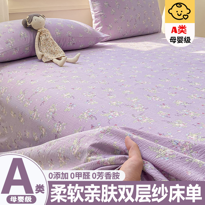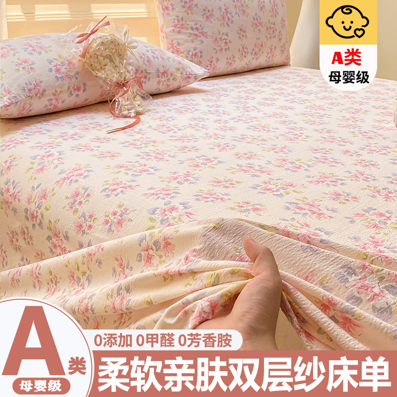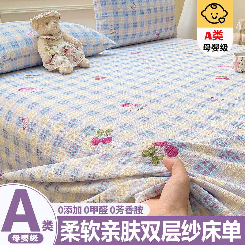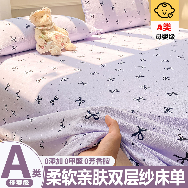 ins双层纱床单单件宿舍单人2025款四季通用a类裸睡被单枕套三件套,江苏 南通