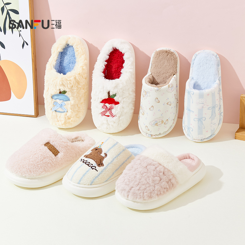 三福冬季保暖毛毛拖鞋居家半包拖防滑厚底日用室内棉鞋拖鞋845871,广东 广州
