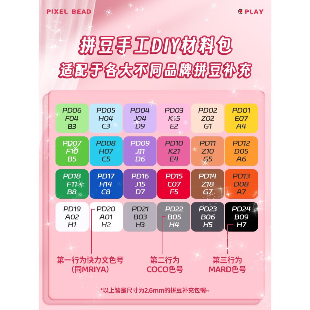 拼豆补充包2.6mm小豆大豆儿童益智玩具融合拼豆手工diy全套材料包