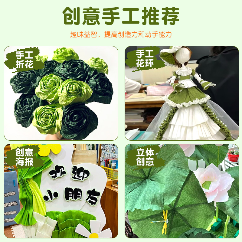 绿色皱纹纸手工花材料褶皱纸彩色加厚幼儿园小学生立体花荷花荷叶