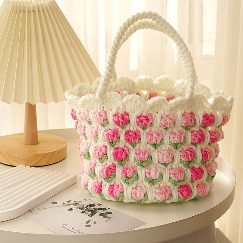 菲菲姐家郁金香手工编织包自制毛线diy材料送闺蜜女友礼物手提包,江苏 无锡