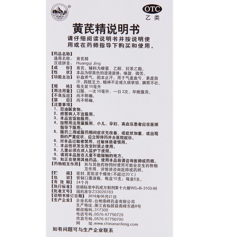 低至10.9元/盒】包邮】南峰 黄芪精 10ml*10支wjws