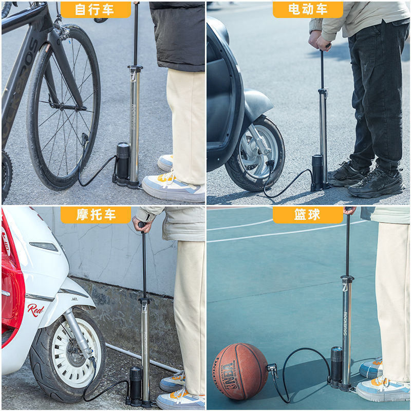 洛克兄弟自行车打气筒高压汽车电动车机车家用气压表打气机篮球