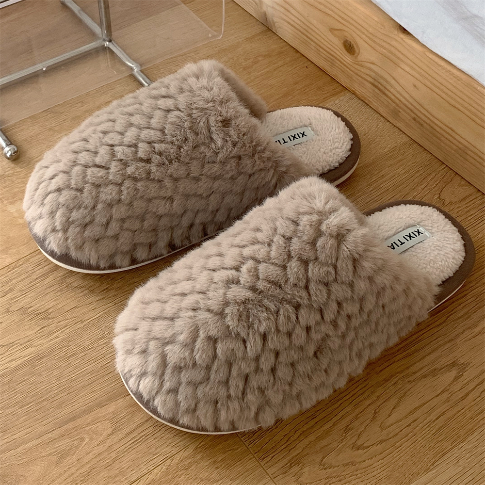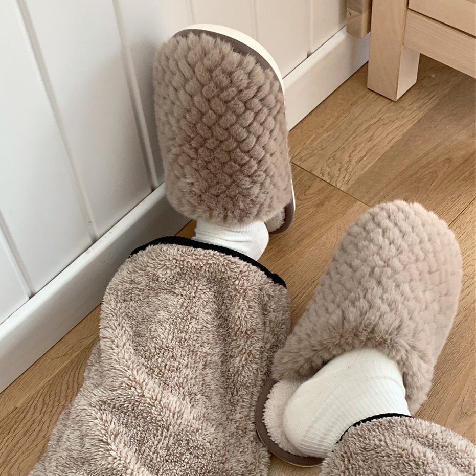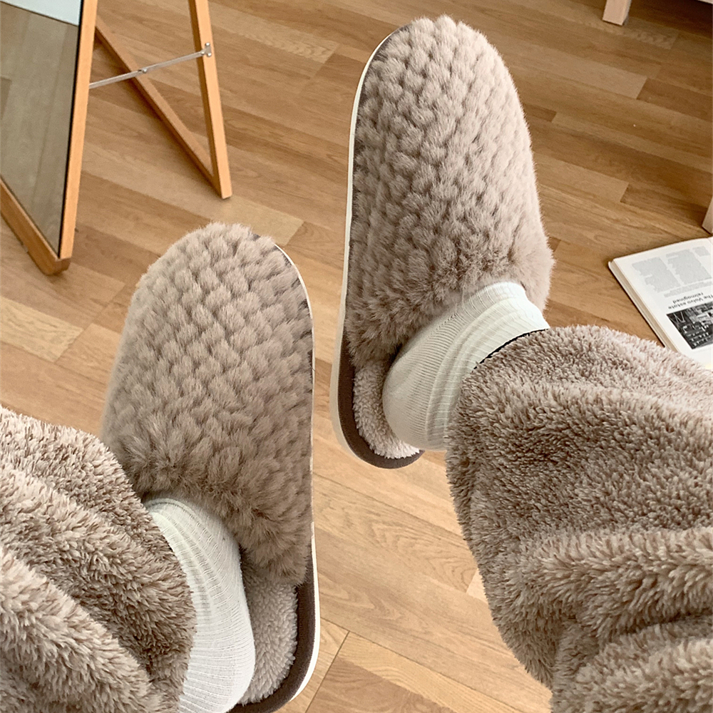 细细条 棉拖鞋男士冬季情侣时尚简约室内防滑保暖毛绒绒居家棉鞋