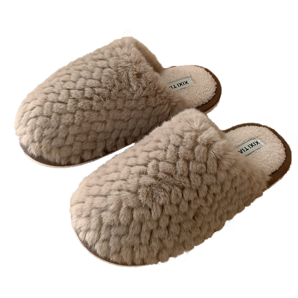 细细条 棉拖鞋男士冬季情侣时尚简约室内防滑保暖毛绒绒居家棉鞋,广东 揭阳