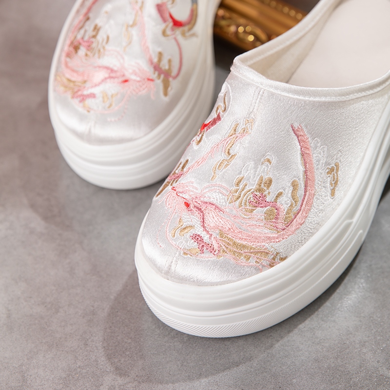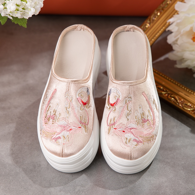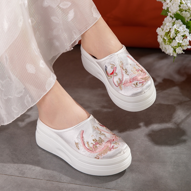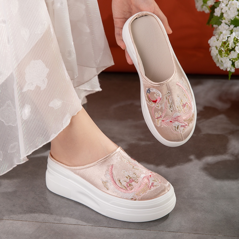 民族风绣花鞋女夏新款厚底古风老北京包头半拖鞋汉服国风增高单鞋,湖南 长沙