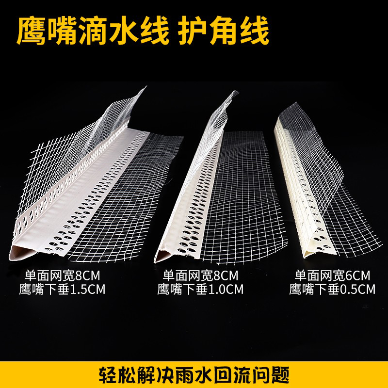 外墙保温护角线PVC鹰嘴滴水线条建筑成品滴水线带网格布阴阳角条,上海