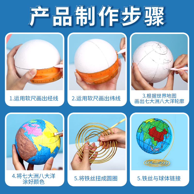 地球仪手工制作diy材料初中学生地理作业空白泡沫球地球模型全套