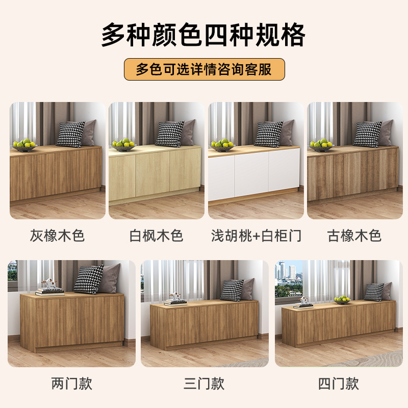 实木飘窗柜子落地矮柜卧室置物柜阳台储物柜可坐家用收纳抽屉定制