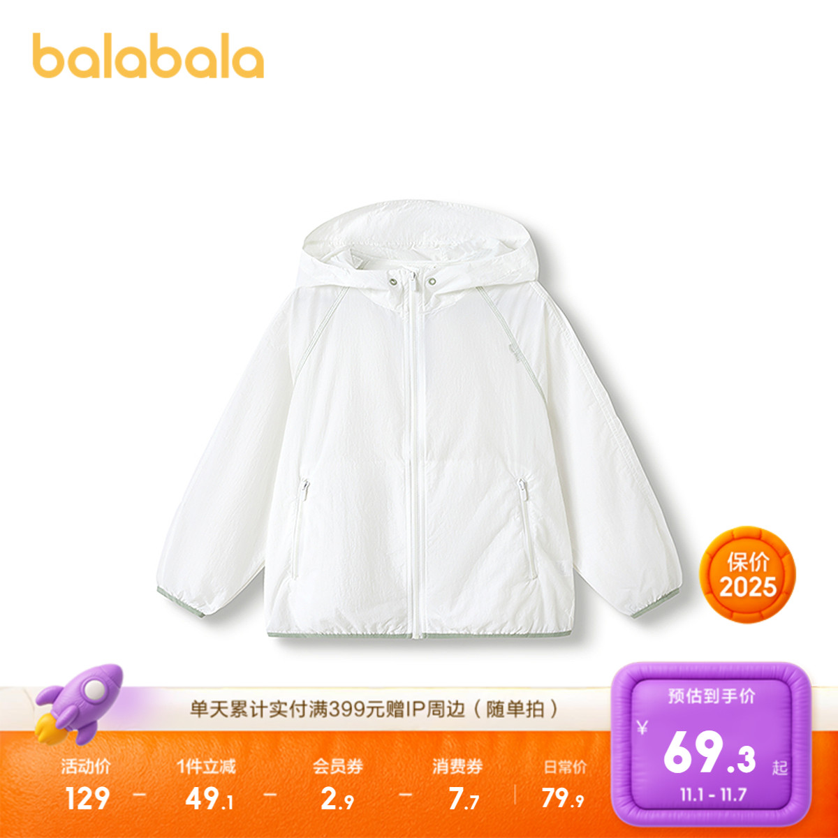 巴拉巴拉童装儿童防晒衣男童夏季薄款皮肤衣中大童连帽时尚便携
