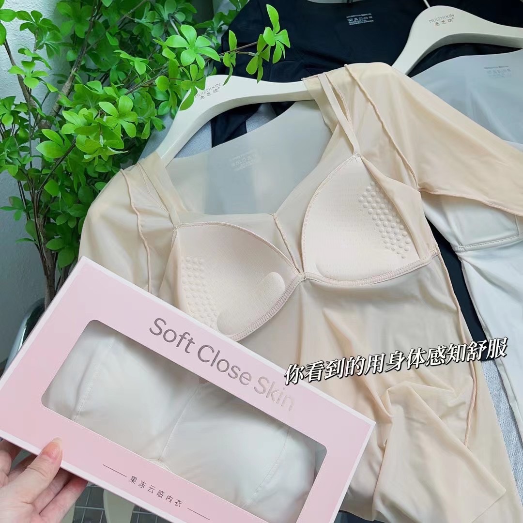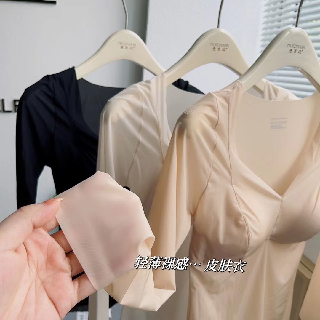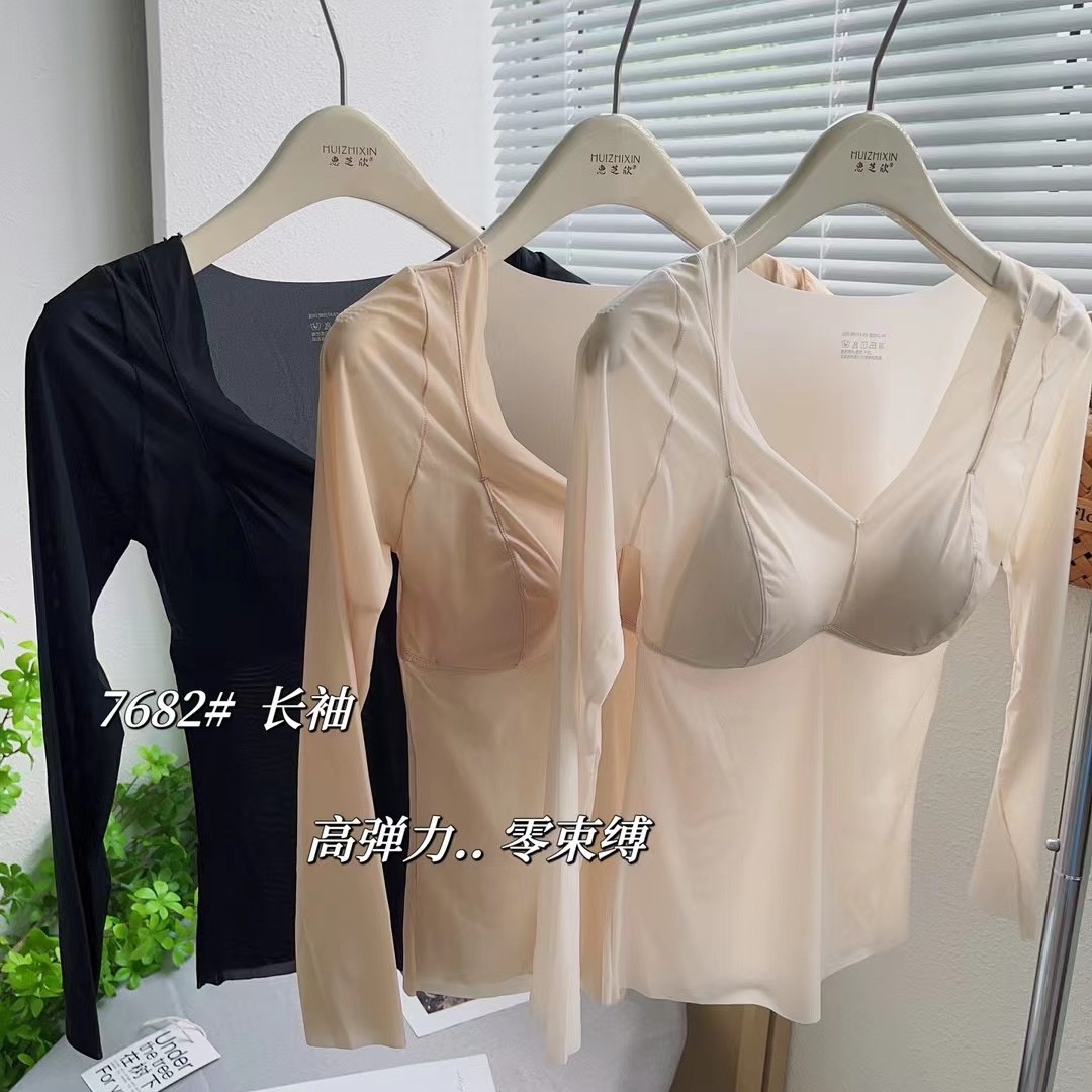 惠芝欣7682秋款果冻云感皮肤衣不粘毛一体胸垫免穿文胸长袖打底衣,浙江 杭州