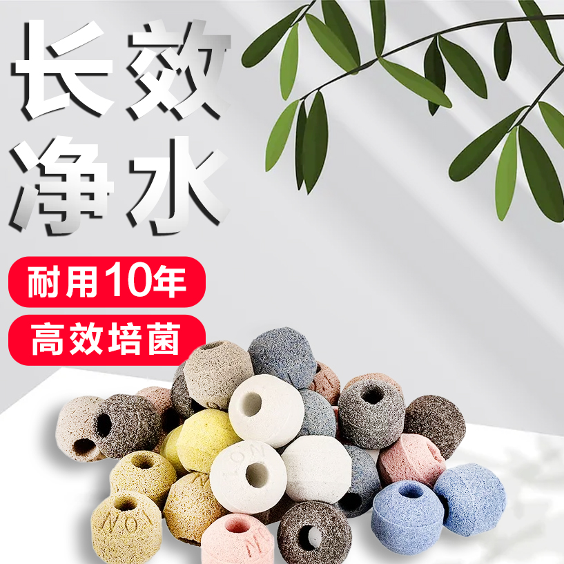 鱼缸过滤材料生化细菌屋陶瓷环净水五色石英球原矿纳米硝化滤材