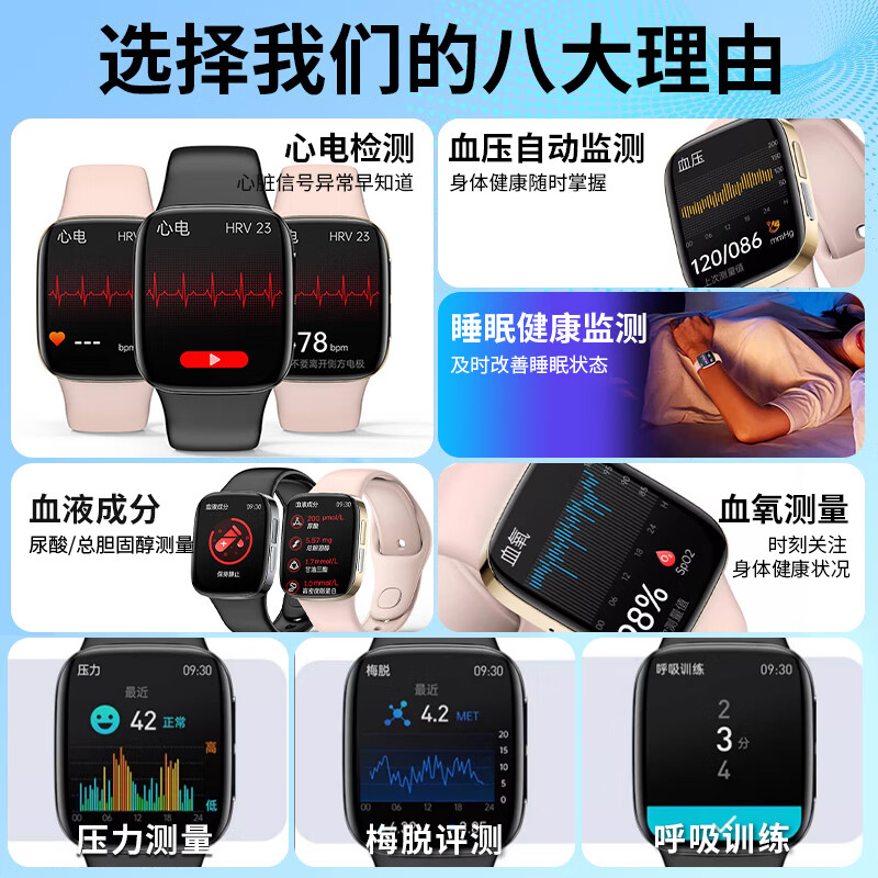 【兮茵】智能手环蓝牙通话NFC门禁测量血糖血压多运动模式免采血高精度智能手环男女款,广东 深圳