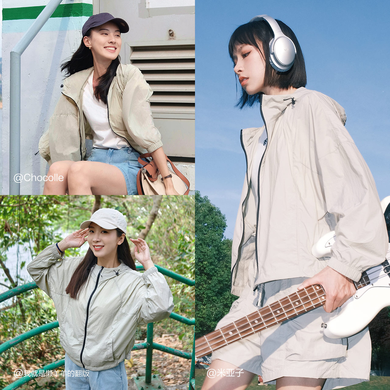 森马防晒衣女户外夏季薄款外套抽绳宽松有质感夹克女生白色皮肤衣