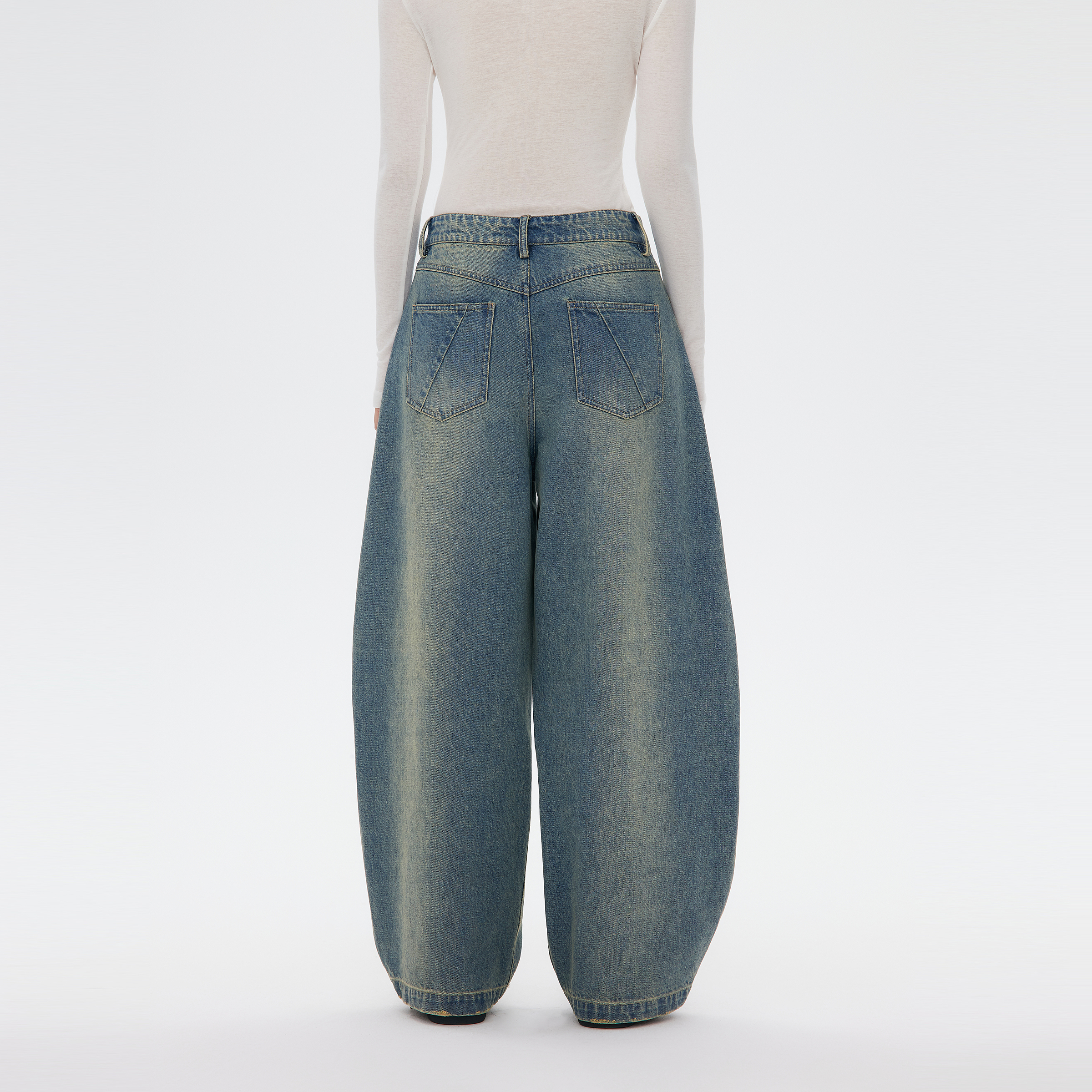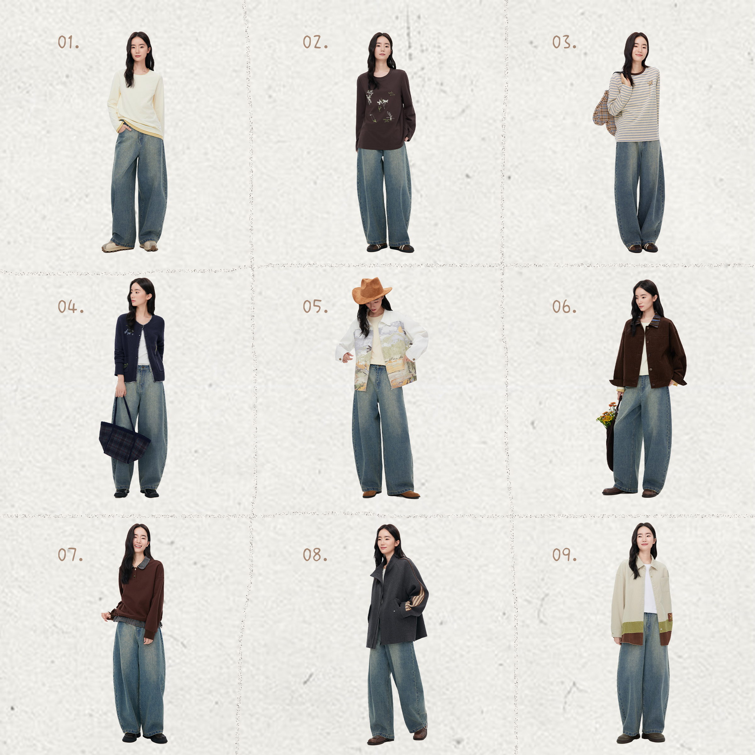 飞鸟和新酒宽松高腰牛仔裤女小个子2025秋季新款休闲显瘦弯刀裤,浙江 湖州