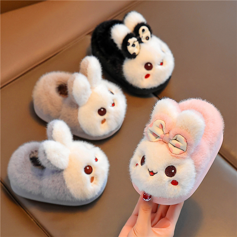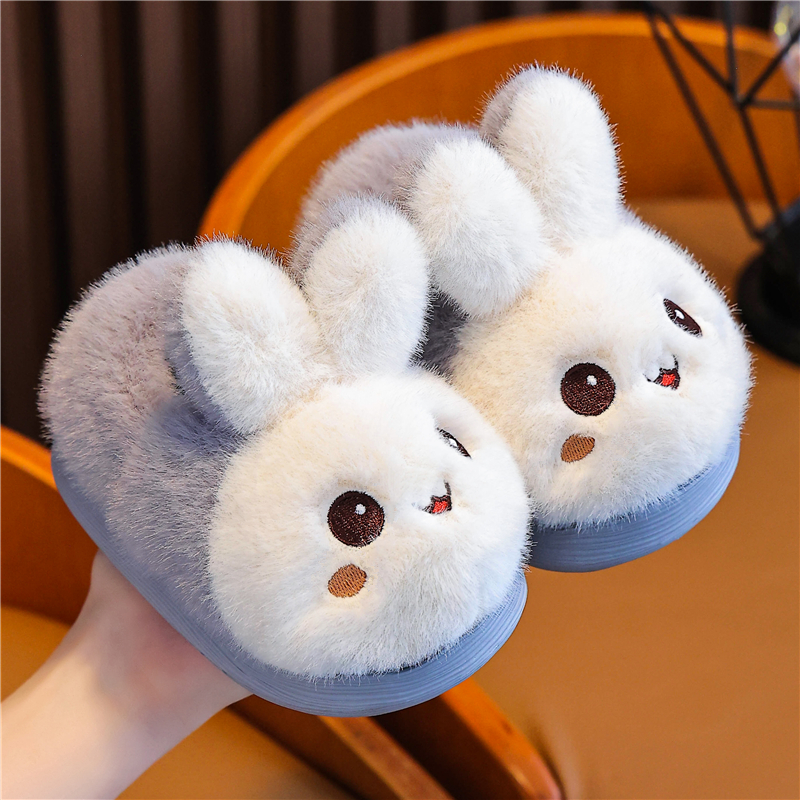 儿童棉拖鞋冬季卡通小兔子加绒防滑中小童男女童居家保暖包跟棉鞋,浙江 金华