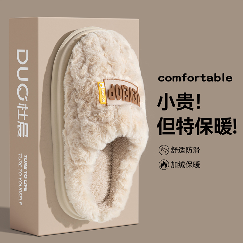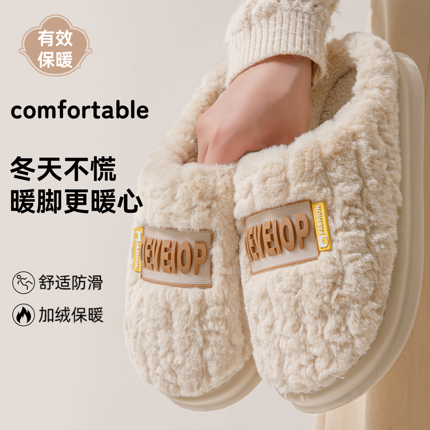 居家厚底棉拖鞋女士秋冬季2025新款室内舒适毛毛绒防滑保暖棉鞋女,浙江 金华