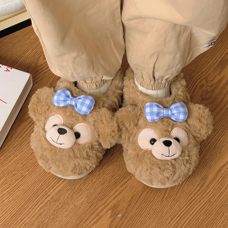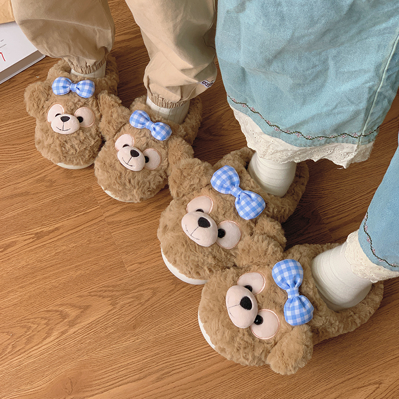可爱小熊儿童棉拖鞋秋冬季保暖女童男童大人亲子毛绒居家棉鞋假日,上海