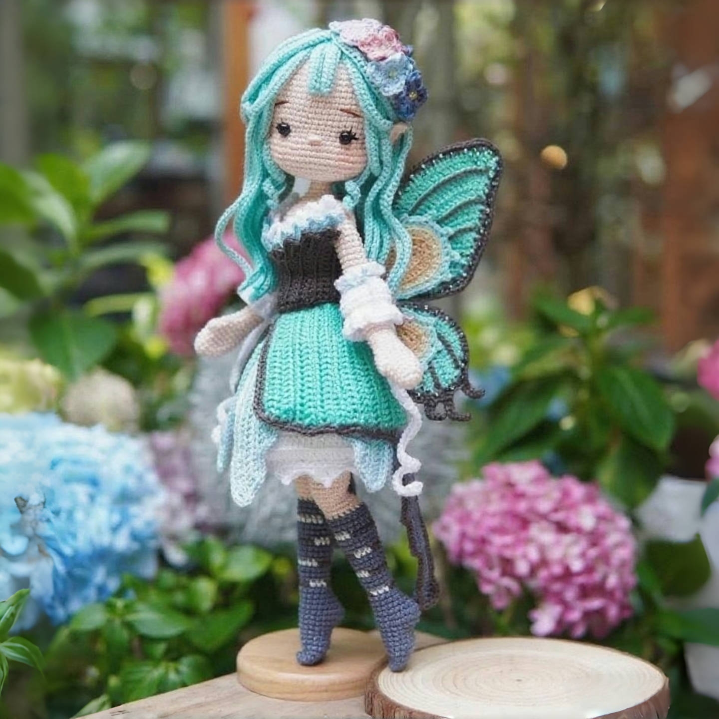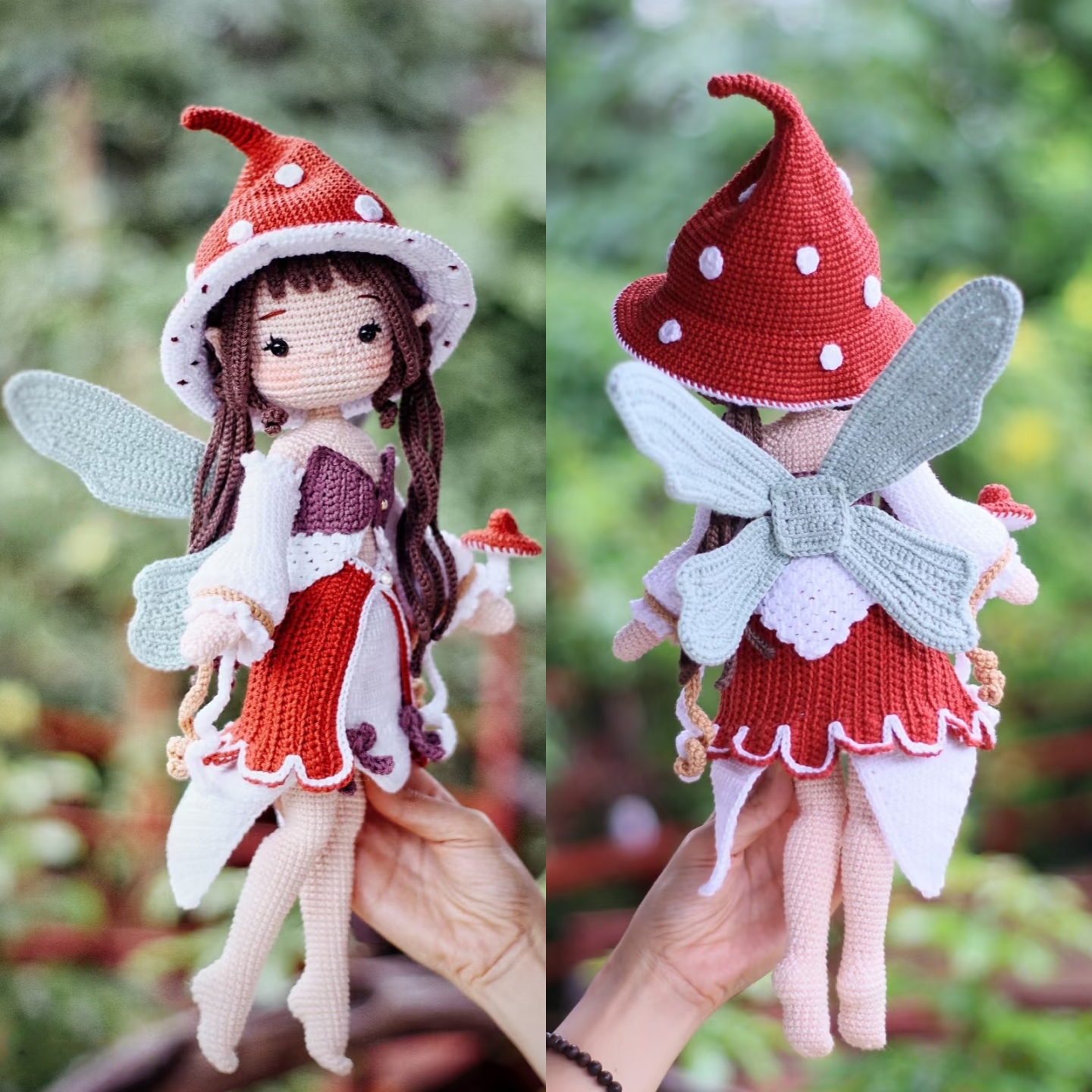 蝴蝶仙子钩针编织材料包玩偶摆件蘑菇仙子DIY手工礼物毛线女孩